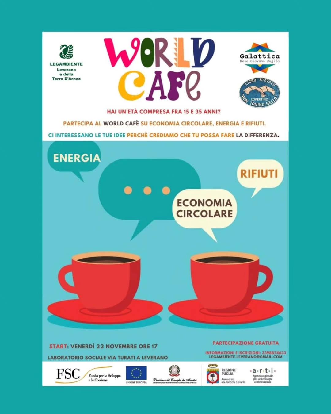 Partecipa al World Cafe’ di Legambiente Leverano su economia circolare, energia e rifiuti.