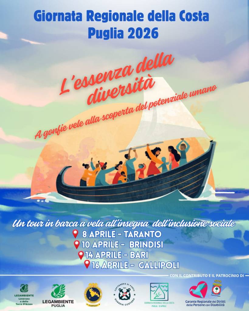 Prende il via domani, 8 aprile, da Taranto la prima edizione diย โLโessenza della diversitร : a gonfie vele alla scoperta del potenziale umanoโ, un innovativo progetto itinerante di inclusione sociale che attraverserร alcuni dei principali porti pugliesi: Brindisi (10 aprile), Bari (14 aprile) e Gallipoli (16 aprile).